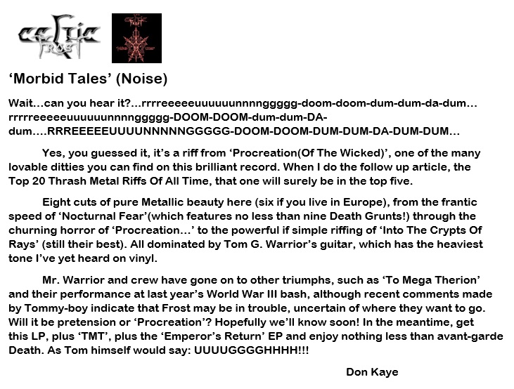 - In store with Tom G. Warrior, Influential Death Metal Iconic band