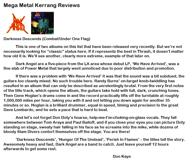 - Dark Angel/Possessed Co-Headline Tour Saturday 8:00 PM Fenders Ballroom Long Beach, CA